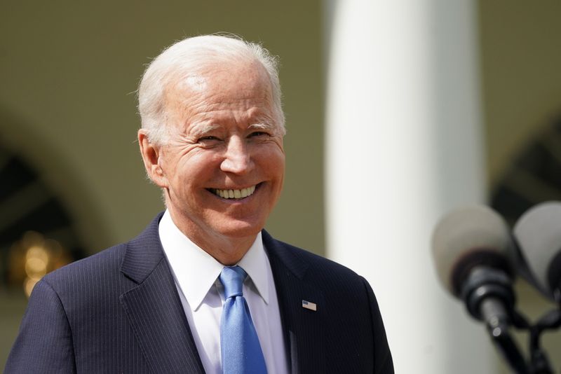 O presidente Joe Biden apareceu na Casa Branca para comentários sem máscara. “Acho que é um grande marco, um grande dia”, disse.