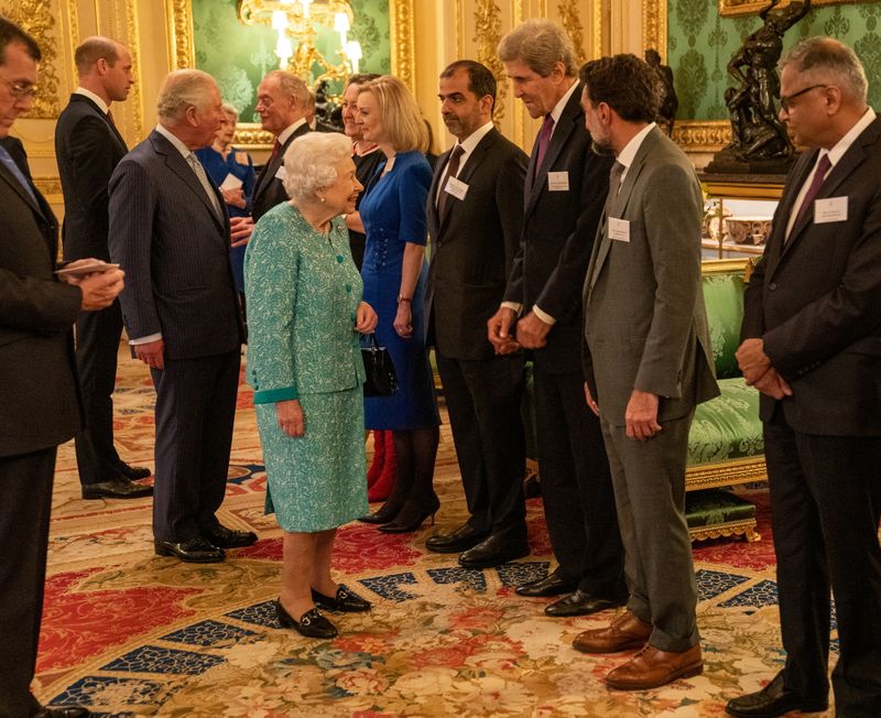 Ela passou a noite de terça-feira no Castelo de Windsor como anfitriã de uma recepção regada a drinques para líderes empresariais bilionários, como Bill Gates, já que o primeiro-ministro Boris Johnson convocou uma conferência de investimentos verdes antes da Conferência das Nações Unidas sobre Mudanças Climáticas de 2021 (COP26).