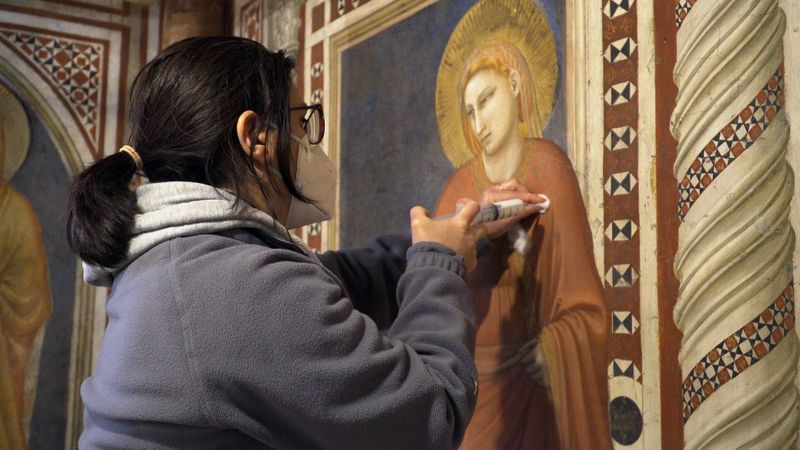 Eles quase já concluíram o projeto que dura um ano para limpar e consolidar os afrescos da Capela da Madalena, situada na capela inferior da basílica de São Francisco de Assis, que abriga a tumba do santo do século 13.