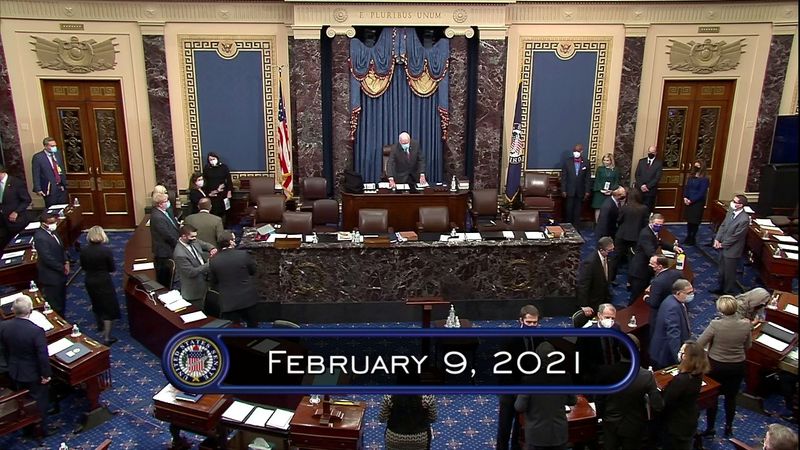 WASHINGTON (Reuters) – Os senadores norte-americanos votaram nesta terça-feira para avançar com o julgamento de impeachment de Donald Trump sob a acusação de incitar o ataque ao Capitólio, rejeitando a alegação de que o processo seria inconstitucional, depois de verem um vídeo do ataque de janeiro.