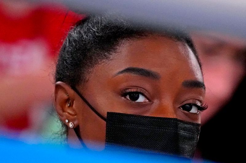 Mais tarde, ela decidiu não defender seu título olímpico na prova do individual geral, vencida por sua companheira de equipe Sunisa Lee. A brasileira Rebeca Andrade ficou com a medalha de prata nesta prova e ainda vai disputar as finais de solo e salto.