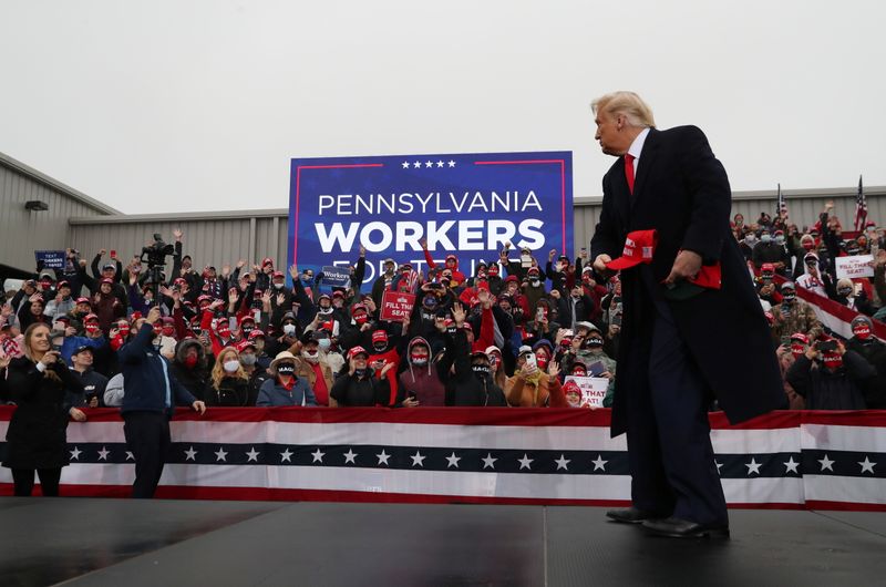 Apesar da sólida liderança de Biden nas pesquisas nacionais, a disputa parece mais acirrada nos Estados indecisos mais importantes para a disputa, que podem decidir o resultado. Uma pesquisa Reuters/Ipsos realizada de 20 a 26 de outubro dá a Biden uma pequena vantagem sobre Trump na Pensilvânia.