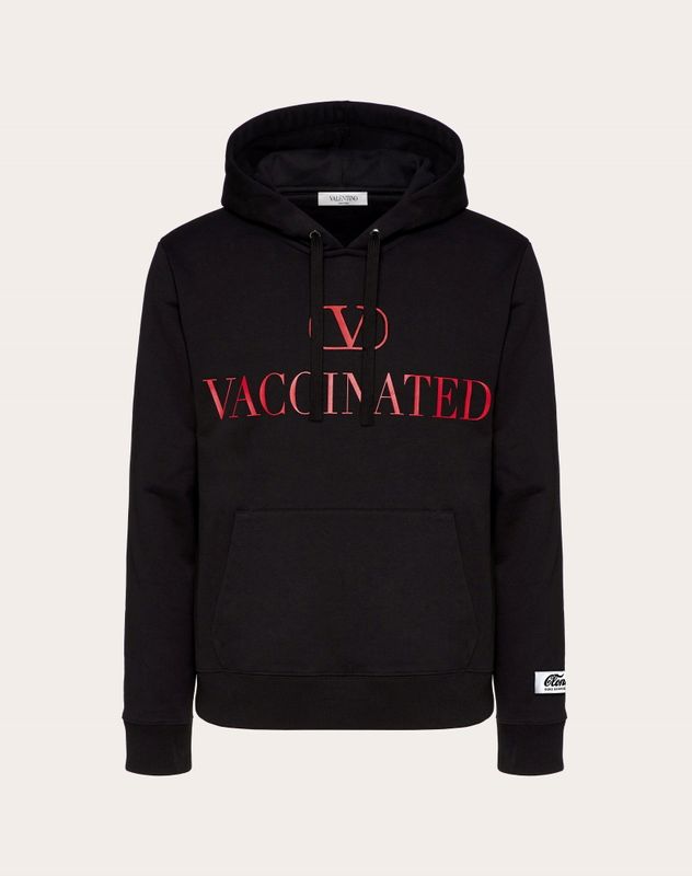 Os moletons pretos, com a palavra “vacinado” em vermelho no peito, foram criados por uma pequena empresa de Los Angeles chamada Cloney, sem que a marca italiana soubesse deles.