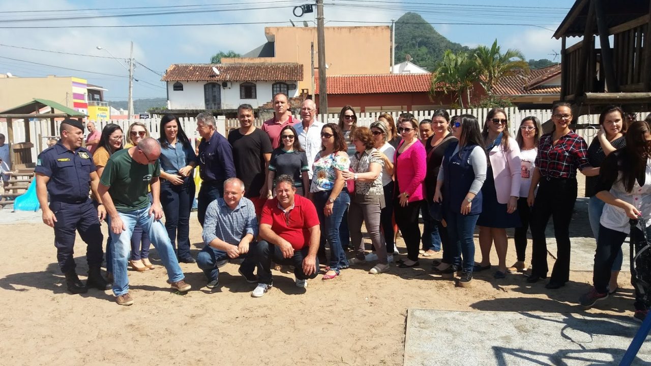 Representantes na inauguração do parquinho em Matinhos. (FOTO: Rafaela da Rocha)