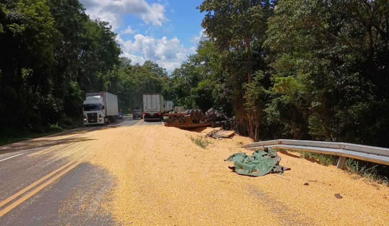 Um caminhão que transportava carga de milho tombou no km 496 da BR-277, em Nova Laranjeiras, deixando a via parcialmente interditada. O acidente aconteceu por volta das 11h20 da manhã desta terça-feira (13).