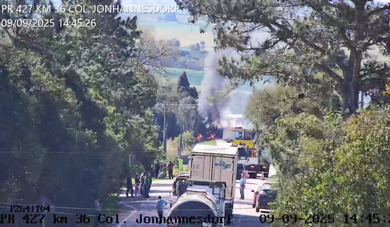 O quilômetro 35 da PR-427 foi interditado na tarde desta terça-feira (9), após um caminhão-tanque pegar fogo na Lapa, município da Região Metropolitana de Curitiba (RMC). O veículo carregado com óleo vegetal tombou na pista e derrubou o produto na rodovia.