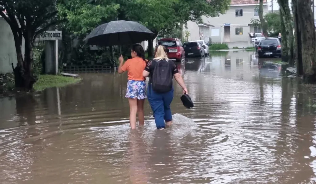 Curitiba e Região Metropolitana sofreram fortes chuvas na tarde desta terça-feira (28). Pinhais foi uma das cidades mais afetadas pelos temporais. Em imagens, é possível ver que a água chegou cobrir parte das pernas das pessoas que passavam pela região. Além disso, a água também invadiu um supermercado no bairro bacacheri, na capital paranaense. Veja imagens abaixo: