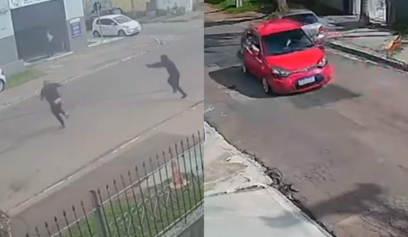 Câmeras de segurança registraram o momento em que o Fiesta vermelho passa pela via e, logo em seguida, é possível ouvir os disparos. Outras imagens mostram a colisão do veículo contra o carro que vendia sonhos, a passagem do Onix de cor escura e, posteriormente, o momento em que a vítima é exeutada após descer do automóvel.