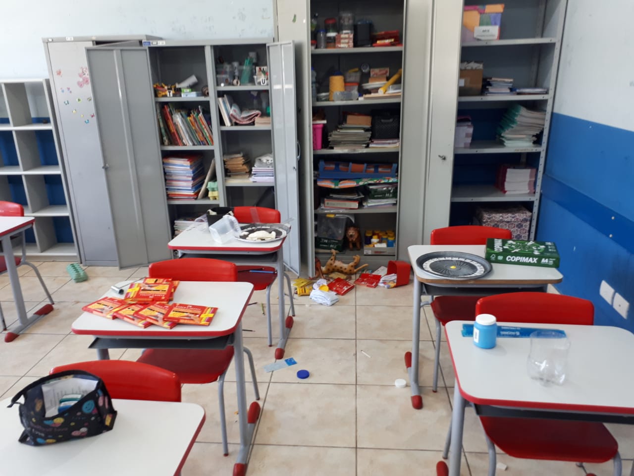 Segundo a direção da instituição, o rastro de destruição ficou por todos os lados: os suspeitos esvaziaram os cinco extintores de incêndio do colégio, destruíram sete das dez portas das salas, arrombaram armários, jogaram tintas nas paredes e quadros negros, quebraram vidros de janelas e jogaram materiais escolares pelo chão.