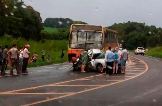 O carro onde os familiares viajavam bateu de frente com um ônibus em um trecho de pista simples entre Palmeira e Irati, por volta das 14h30.