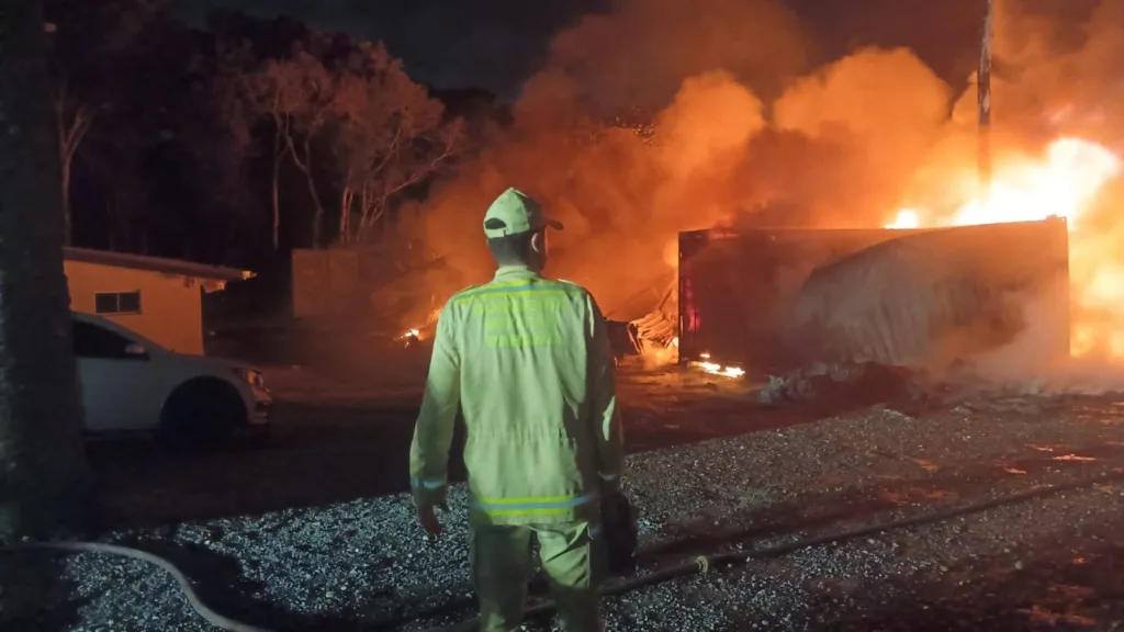 Curitiba - O barracão de uma fábrica de lonas foi destruído em um incêndio registrado na noite deste sábado (15), no bairro Ouro Verde, em Campo Largo, na Região Metropolitana de Curitiba (RMC). As imagens do incêndio são impressionantes (Veja abaixo).