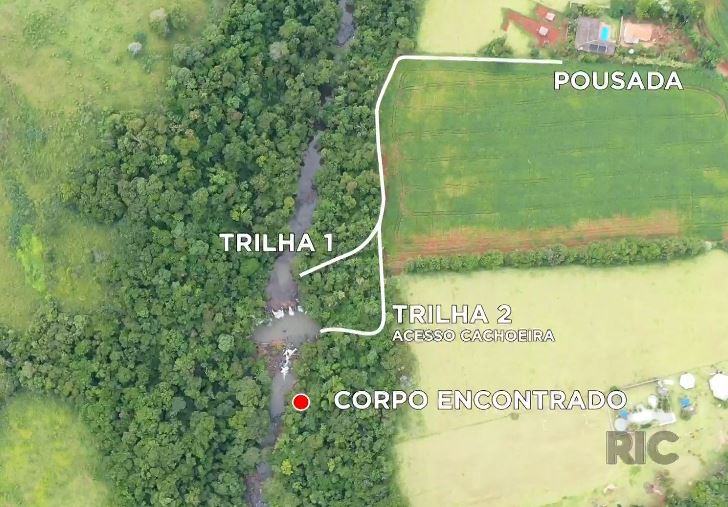 Magó só foi encontrada no início da tarde de domingo, pela própria irmã e a cerca de 10 metros de uma das trilhas principais nas proximidades de uma cachoeira, que fica a cerca de 800 metros da sede chácara.