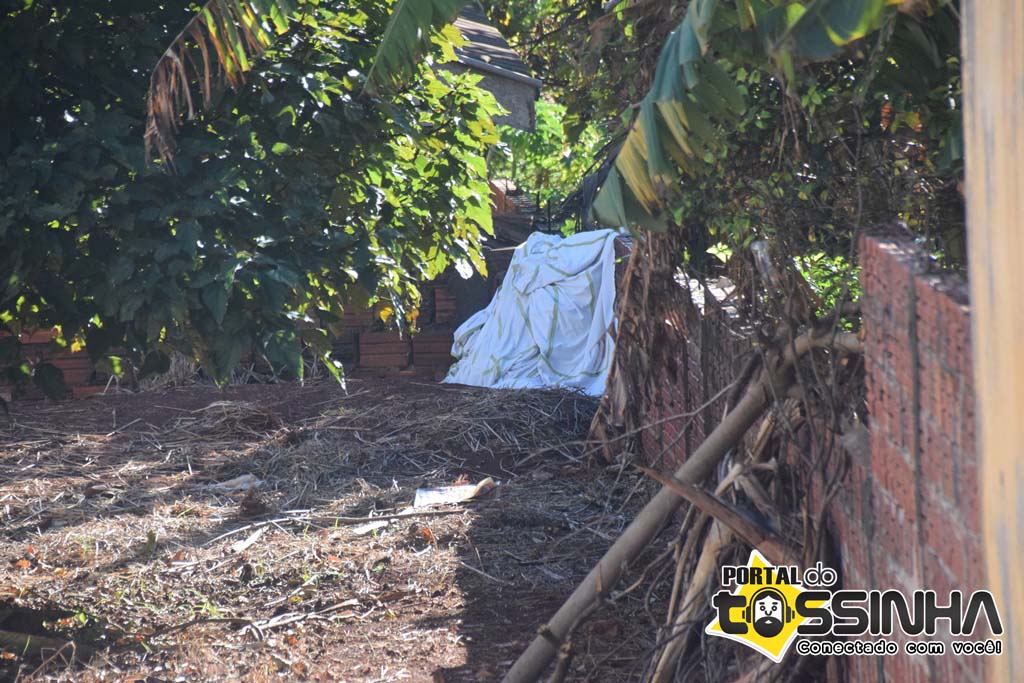Uma viatura se deslocou até a rua Pirapó ao lado do nª 1058 onde uma mulher foi encontrada sem vida nos fundos do terreno.