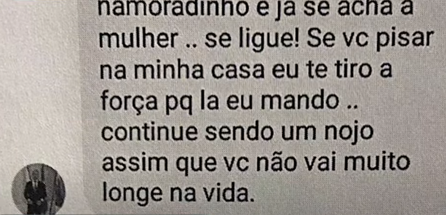 “É muito triste o que ele fez, eu tô sem chão. Mas eu tenho que pensar nos meus filhos, tenho que pensar no meu bem estar. Eu orei, jejuei, tudo o que estava ao meu alcance para tentar salvar o casamento, eu fiz. Só que o que a gente descobriu não tem como. O que eu descobri dele, não tem como eu ficar com ele, entendeu. Infelizmente, tudo o que eu descobri, o que ele fez, não tem como eu ficar. Dessa vez ele vai se ferrar, o que ele fez é pedofilia. E ele fez abuso de menor. Que Deus tenha misericórdia dele mesmo”, diz a mensagem que a vítima mandou para uma familiar.