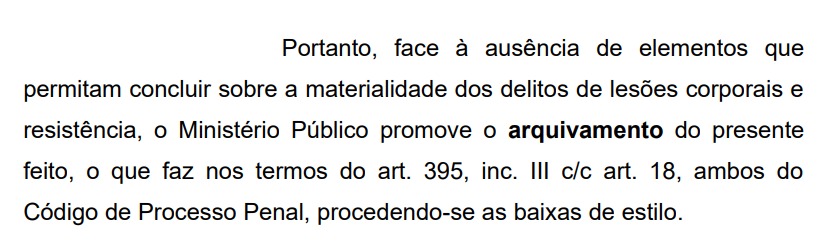 O caso seguiu para a justiça. O Ministério Público analisou a denúncia e concluiu não existir indícios mínimos de agressão.