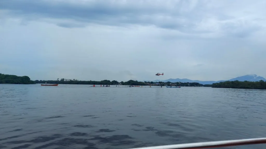 De acordo com o Corpo de Bombeiros, após a colisão, foi constatado o desaparecimento de um tripulante da canoa. As buscas foram iniciadas e contaram com apoio aéreo.