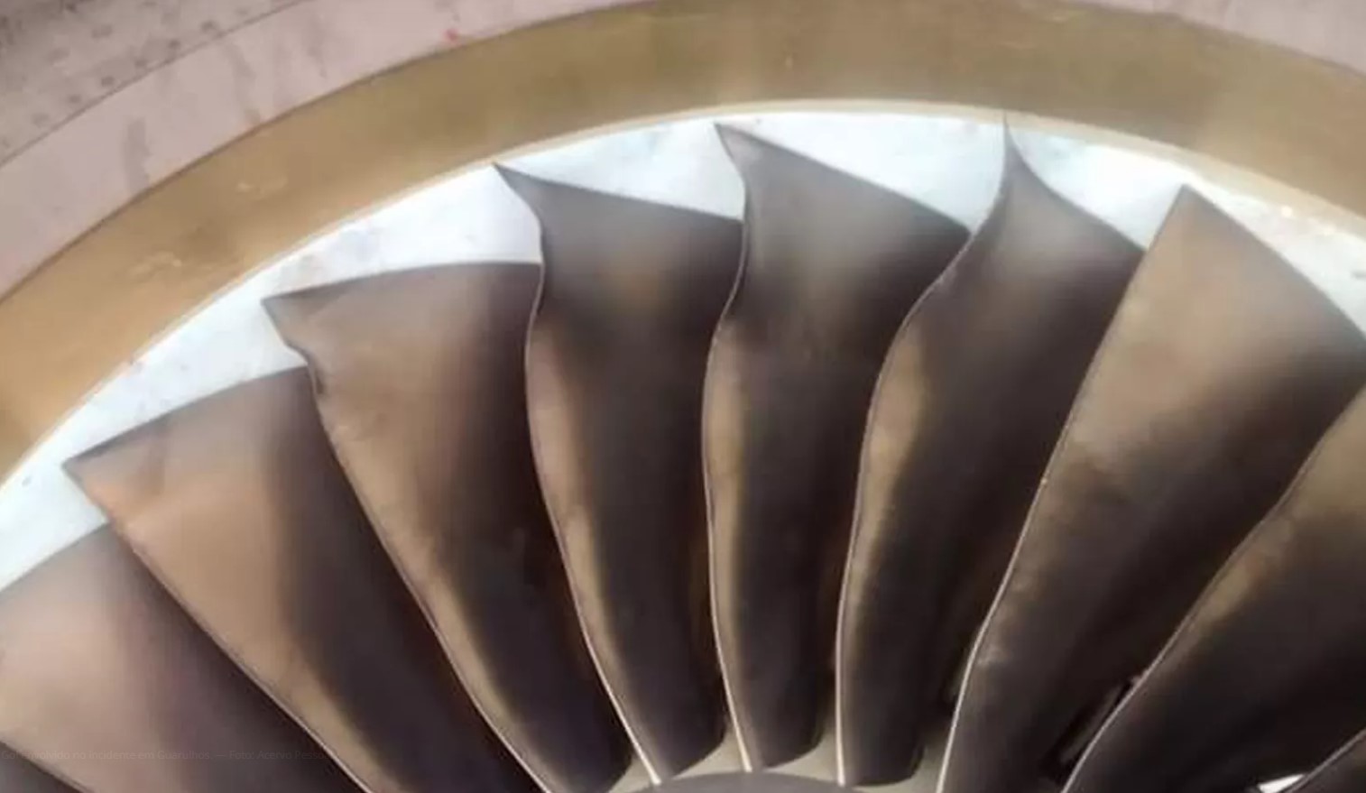 Na foto abaixo é possível ver que a ave provocou danos nas pás do fan, alterando o fluxo de ar no motor provocando o stall de compressor.