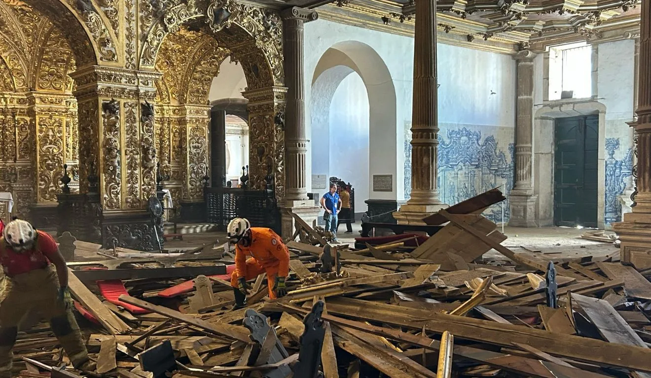 O teto da Igreja São Francisco de Assis, no bairro Pelourinho, em Salvador (BA) desabou na tarde desta quarta-feira (5).