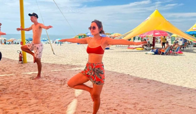 Em meio à programação da Arena Mundo Ric, aulas gratuitas de yoga têm oferecido um momento de pausa e conexão na praia